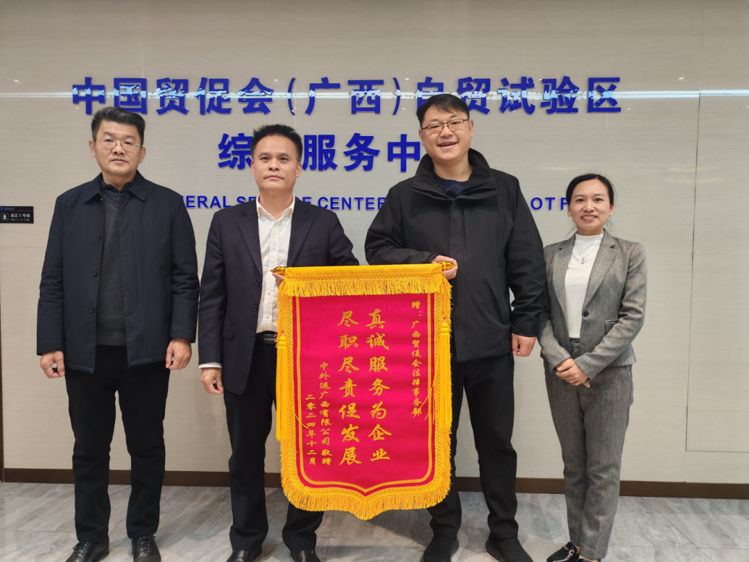 ▲2024年12月25日,中外运广西有限公司向广西贸促会赠送锦旗