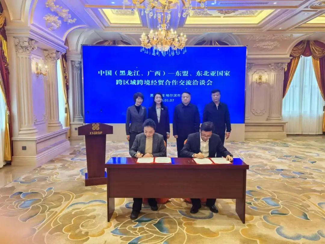 会上,广西贸促会与黑龙江省贸促会签署了战略合作框架协议,共同建立联动机制,进一步促进广西、黑龙江与东盟、东北亚国家境内外工商界经贸交流合作,助力广西和黑龙江织密服务企业网,扩大国际“朋友圈”。