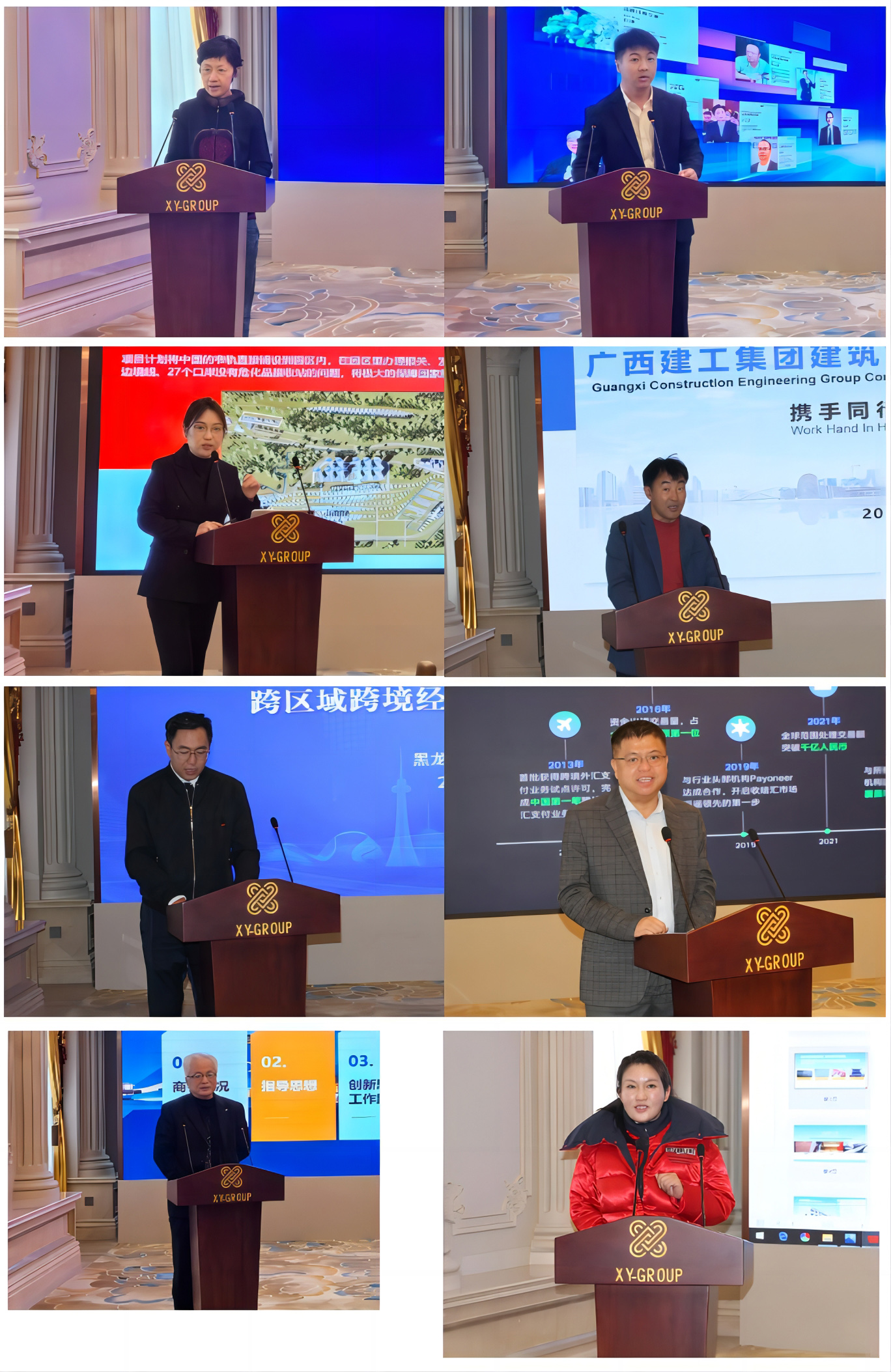 黑龙江省商务厅对俄贸易处二级调研员刘立新、广西东盟跨境电商总部基地跨境运营总监黄楚良分别就对俄经贸合作情况、开拓东盟市场作了介绍发言,轩辕集团大项目中心总经理邢淑杰重点介绍了中俄经贸合作的优势业务和赴俄罗斯投资有关概况。广西建机工程有限公司东北分公司总经理单威、黑龙江省对俄经贸投资商会执行会长矫健、广西易宝支付有限公司副总裁曹红杰、黑龙江省松林林业有限公司副总经理刘爽、广西合天宝龙食品有限公司董事长陈裕鑫等来自黑龙江和广西的商协会、企业代表介绍了各自公司(机构)的发展情况、主营业务、合作需求。会后,双方企业还进行了交流对接、气氛热烈。