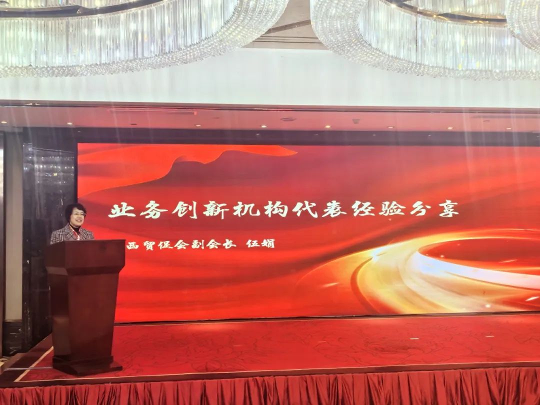 ▲广西贸促会副会长伍娟作经验交流发言