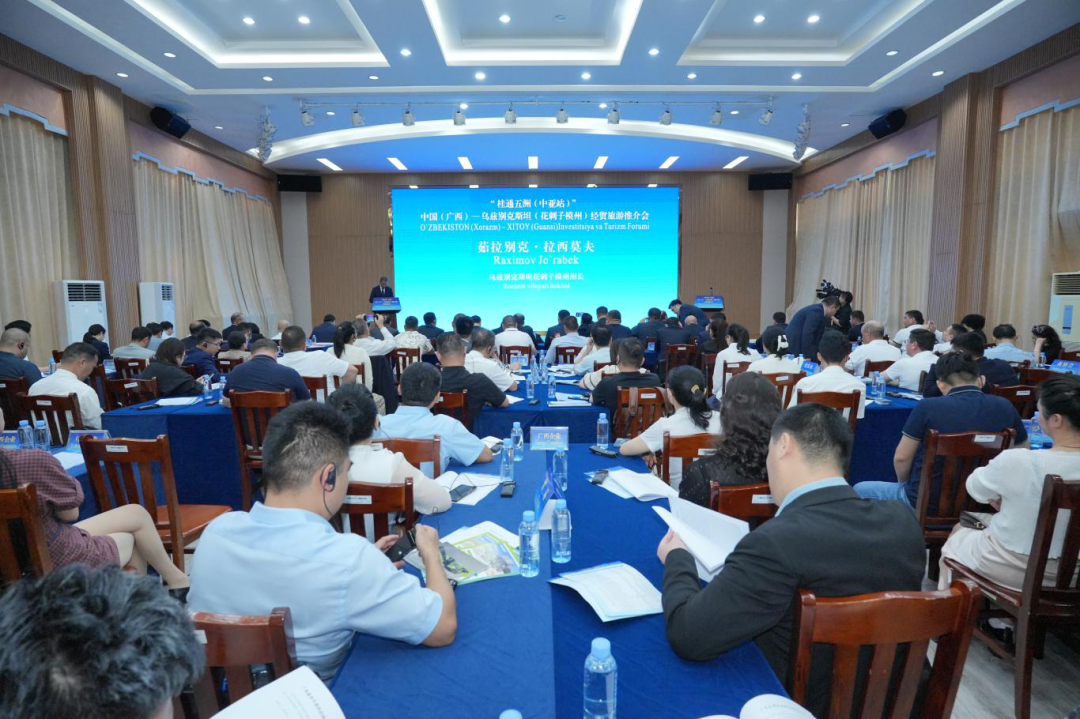 ▲“桂通五洲(中亚站)” 中国(广西)—乌兹别克斯坦(花剌子模州)经贸旅游推介会现场