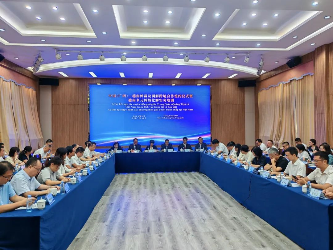 ▲首次与百色仲裁委、越南商业仲裁中心、越南河内贸易调解中心等部门联合举办中国(广西)—越南仲裁及调解跨境合作签约仪式并设立联合秘书处