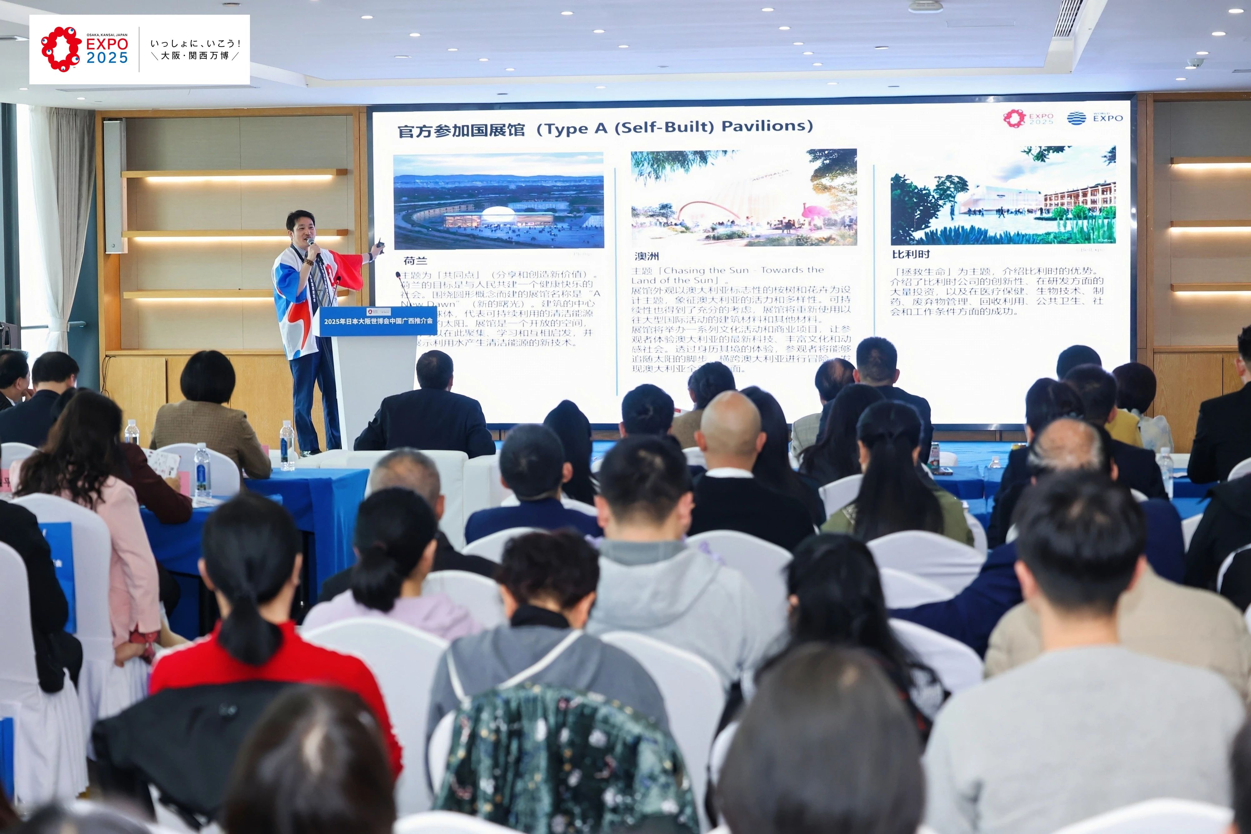 2025年日本大阪世博会(简称大阪世博会)将于2025年4月13日至10月13日在日本大阪举办,中国政府将组织中国馆参加大阪世博会。1月23日,由2025年日本国际博览会协会主办的2025年日本大阪世博会中国广西推介会在南宁举行。