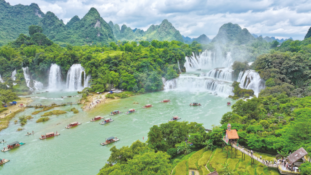 年末,中国首个跨境旅游合作区——中越德天(板约)瀑布跨境旅游合作区(下称“合作区”)内,不少中越游客畅游“山水画廊”,打卡网红地标,品尝中越两国特色美食。