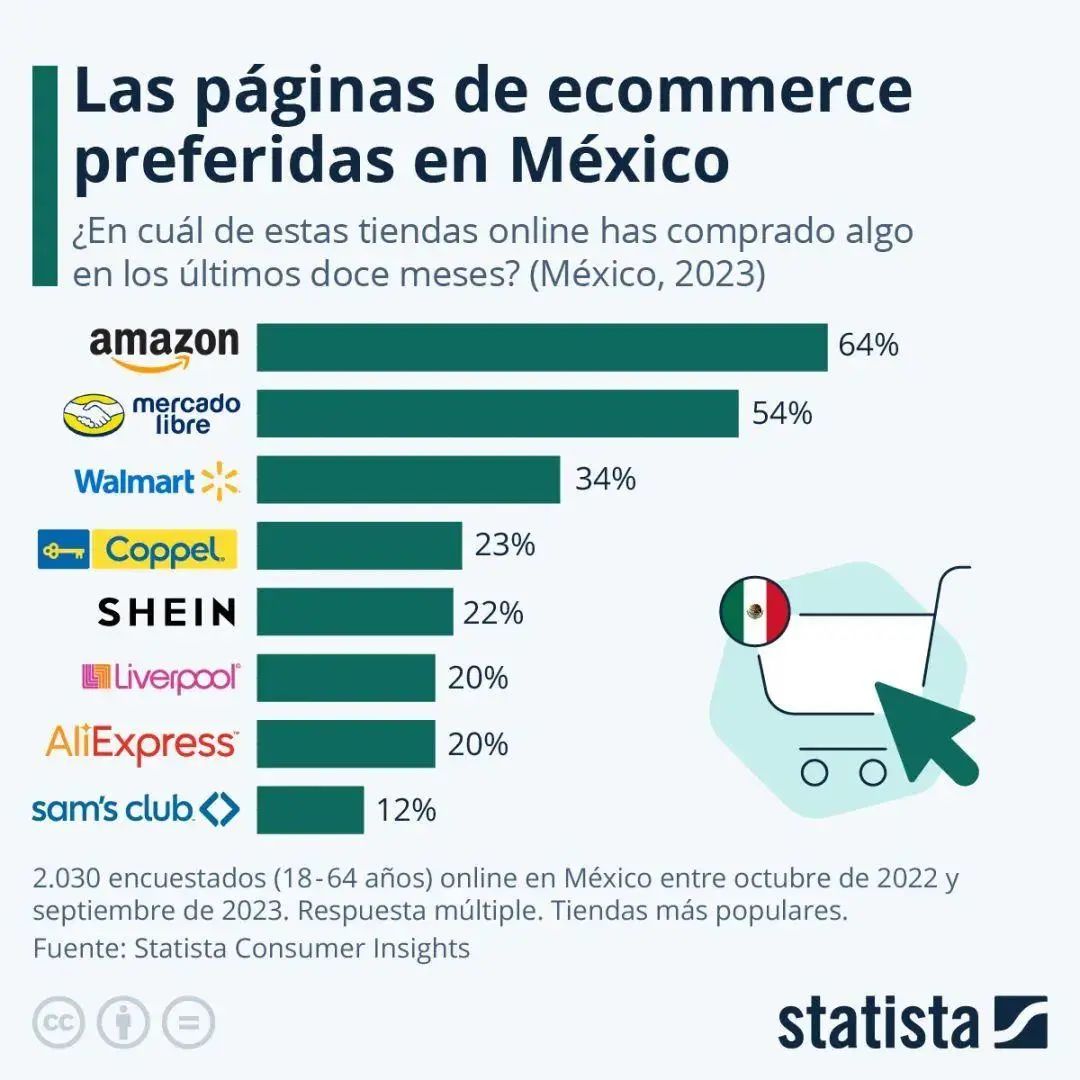 墨西哥作为全球增长最快的电子商务市场之一,吸引了众多跨境电商平台的布局。亚马逊、沃尔玛和美客多占据墨西哥电商平台的前三位,而速卖通、Temu、Shein和Shopee等平台也紧随其后,展现出强劲的市场竞争力。特别是Shein和Temu,在墨西哥的市场份额相当可观。Shein自2018年进入墨西哥市场后,迅速成为当地时尚领域的佼佼者;而Temu自2023年5月上线墨西哥站以来,通过低价补贴、免费配送和退货等措施,其平台流量在短短六个月内实现了指数级的增长。