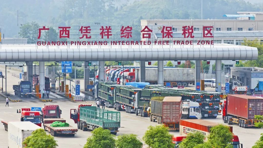在苏州富联康物流有限公司凭祥保税仓内,一箱箱电子产品经查验后快速装车通关发往越南。该公司负责人介绍,作为友谊关口岸3C电子类产品主要服务商之一,凭祥保税仓每天出关车辆达到60—70台,预计2024年保税货值达140亿元。