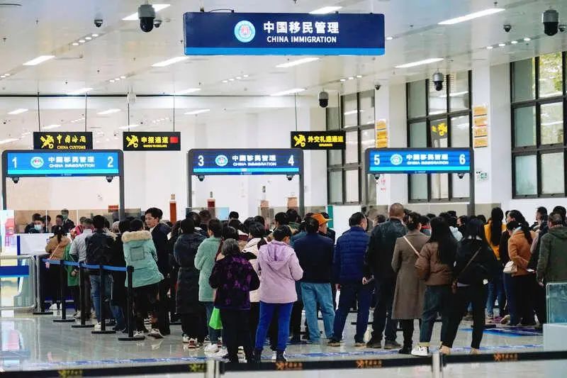 2月27日,硕龙口岸,旅客有序接受出入境边防检查。谢志帅摄