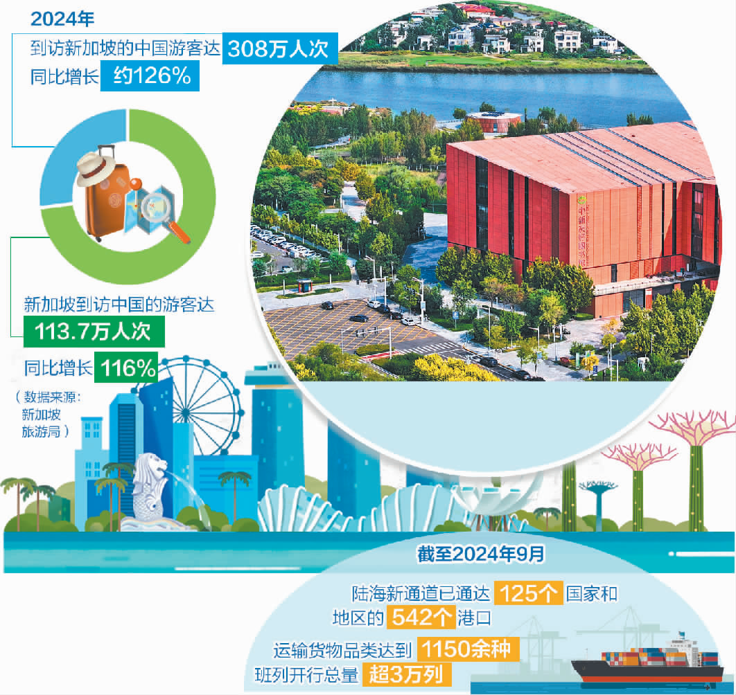 为促进贸易便利化,在交通物流方面,中新两国在双边合作机制下努力建设陆海新通道,并在基础设施建设等方面开展合作,成效十分显著。截至2024年9月,陆海新通道已通达125个国家和地区的542个港口,运输货物品类达到1150余种,班列开行总量超3万列。