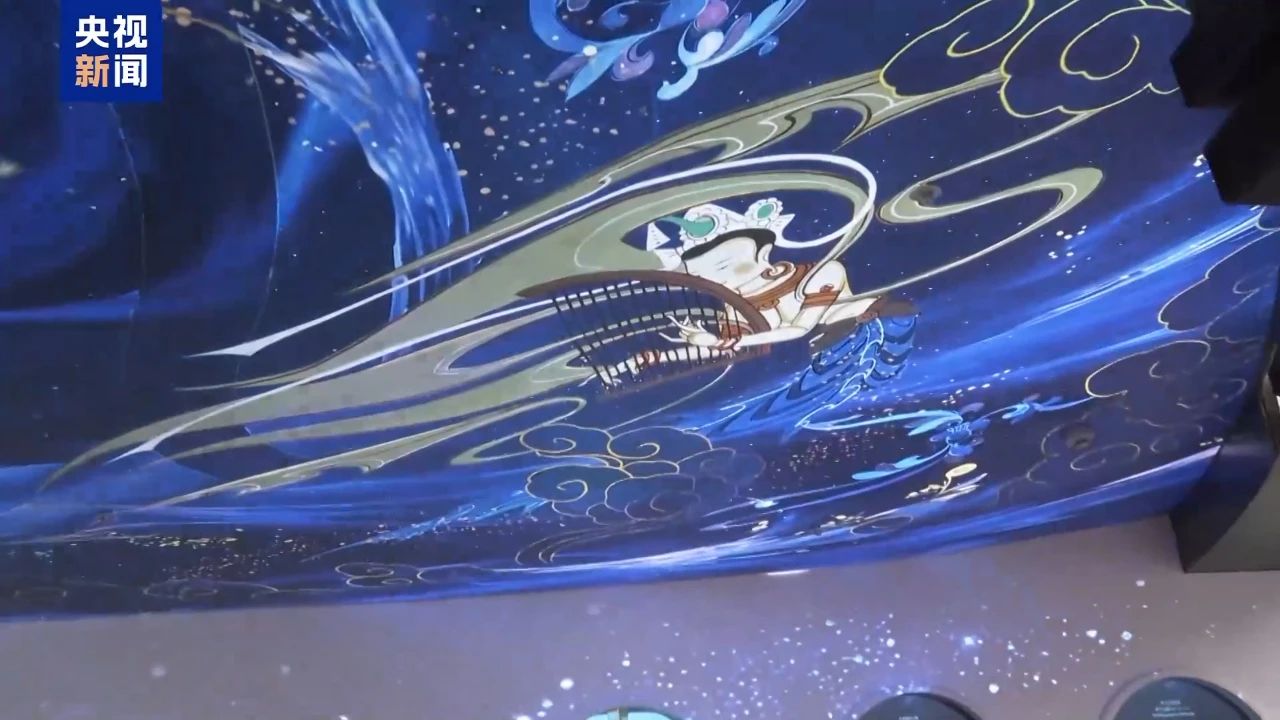 这个大圆盘当中,用我们的很多中国传统的图案进行了现代化的处理,用现代科技让这个图案动起来了。大家戴上VR眼镜再看这个大圆盘的时候,把手伸出来,这个凤鸟就会飞到我们的手上,和我们的观众有一个很好的互动体验。