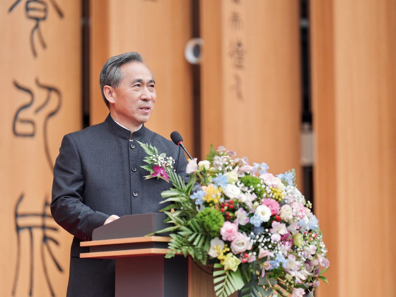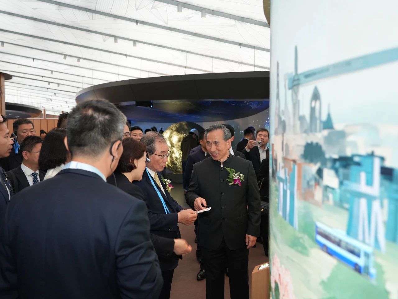 任鸿斌现场宣布大阪世博会中国馆正式开馆,同与会嘉宾共同观看中日友好纪念舞剧《朱鹮》,并现场参观中国馆。