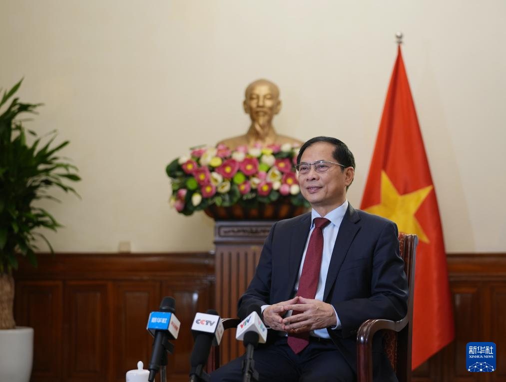 4月11日,越南副总理兼外长裴青山在越南首都河内接受新华社记者采访。新华社记者 许睿 摄
