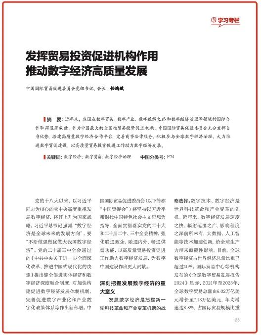 发挥贸易投资促进机构作用推动数字经济高质量发展