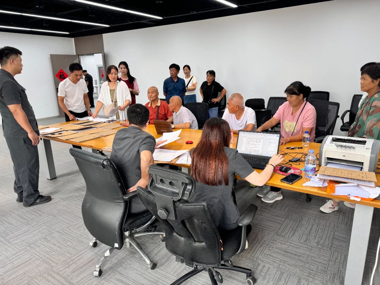 巡回调解当天,气温直逼40摄氏度,梁各庄村解纷联络站里人头攒动。