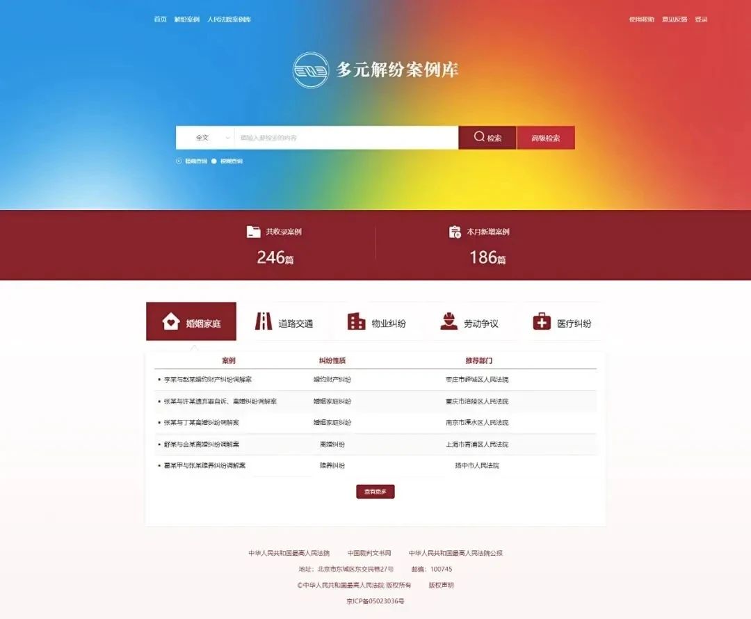 2024年5月开始,最高人民法院会同20家单位共建涵盖调解、仲裁、行政复议等非诉讼纠纷解决方式的多元解纷案例库,针对群众生产生活中常见的矛盾纠纷,运用通俗易懂的语言阐释非诉讼方式解决纠纷的可行方案和有效路径。2025年1月22日,多元解纷案例库正式上线,并面向社会公众开放。