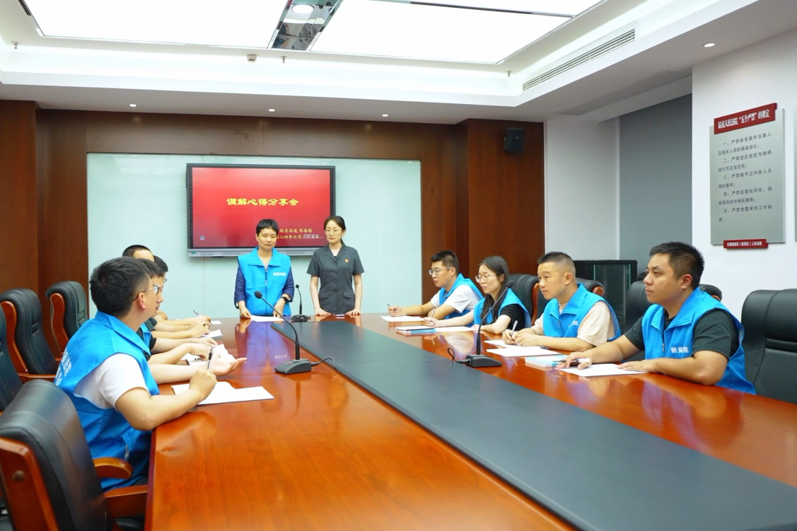 江苏无锡新吴区法院江溪法庭组织跟班学员开展调解心得分享会,学员分享在实训期间亲历案例,畅谈调解感悟与经验。唐清妍 摄