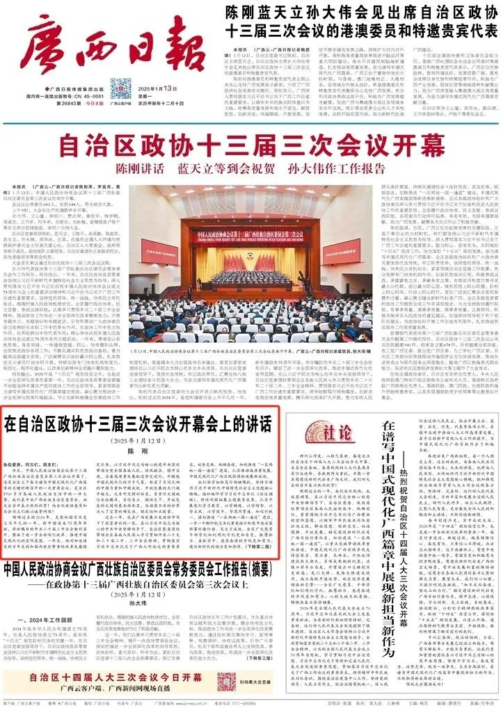 过去一年,也在广西发展历史进程中写下了浓墨重彩的一笔。在以习近平同志为核心的中共中央坚强领导下,自治区党委团结带领全区各族人民深入学习贯彻中共二十大和二十届二中、三中全会精神,贯彻落实习近平总书记关于广西工作论述的重要要求,攻坚克难、砥砺奋进,加快推进“一区两地一园一通道”建设,扎实推动高质量发展,中国式现代化广西实践取得新进展新成效。