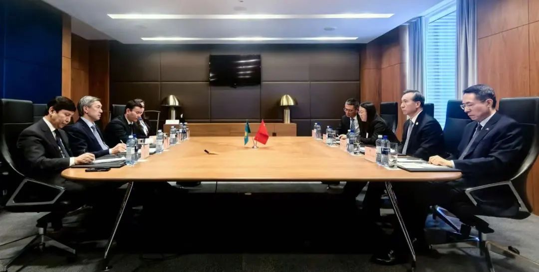 2月12日,任鸿斌在阿拉木图会见哈萨克斯坦中央信贷银行集团董事会主席巴伊森托夫