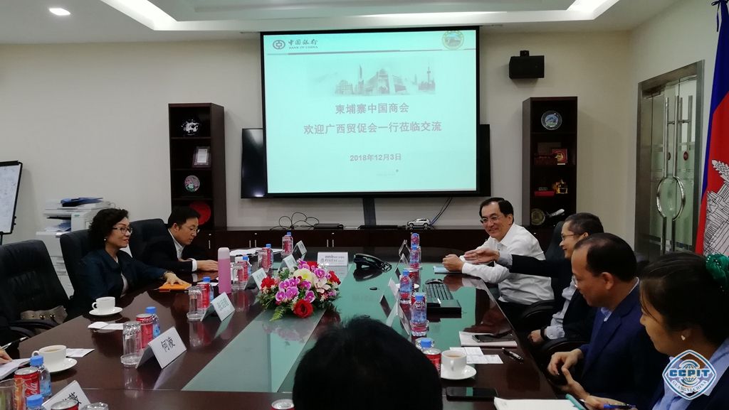 12月3日,广西贸促会副会长李旭香率队拜访柬埔寨中国商会,并与该商会会长、中国银行金边分行行长陈长江等开展座谈。 座谈会上 ...