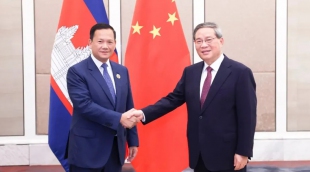 李强会见柬埔寨首相洪玛奈